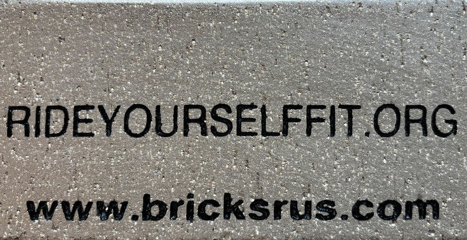 Celebrate your journey with Ride Yourself Fit, Eat Yourself Fit, or Walk Yourself Fit by purchasing a personalized commemorative brick. This is a special opportunity to honor a dear friend, mark a milestone, or preserve a favorite memory. Your brick will become a permanent part of the Gathering Place Pavilion, serving as a lasting tribute to those you choose to honor...and to yourself. Engraving options include your name, the year you joined the group, a loved one, your business or organization, or even a special club. Each brick is a standard 4" x 8" paver with black lettering, and can hold up to three lines with 18 characters per line. We will do our best to accommodate your wishes within those guidelines. Purchasing a brick is an easy and meaningful way to create a lasting memory while supporting this community project. Thank you for being part of it!